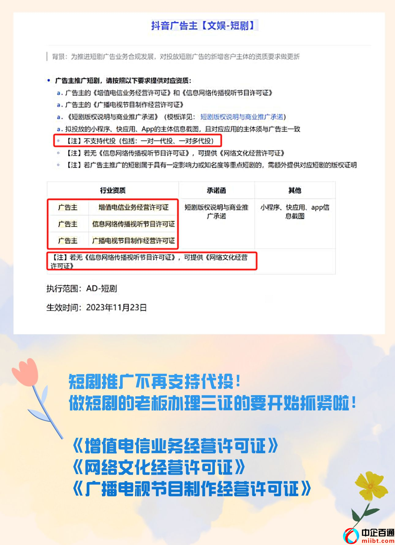 對(duì)于廣告主短劇投放的資質(zhì),中企百通給大家介紹如何辦理。