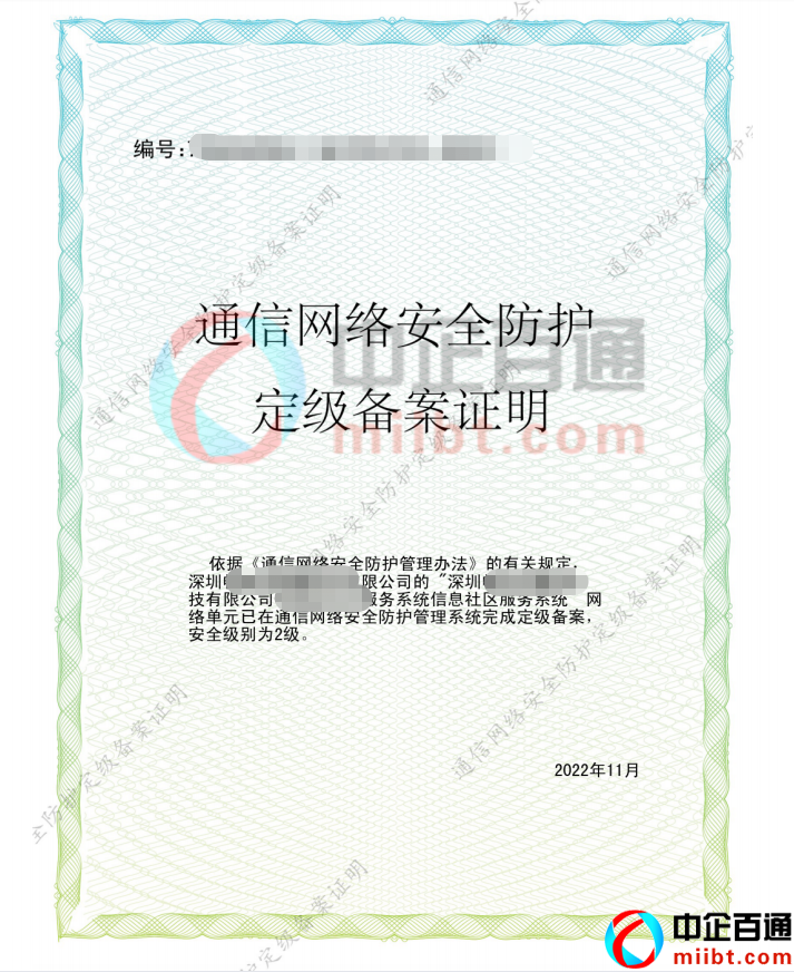 深圳通信網(wǎng)絡(luò)安全防護(hù)定級(jí)備案2級(jí)2022年11月