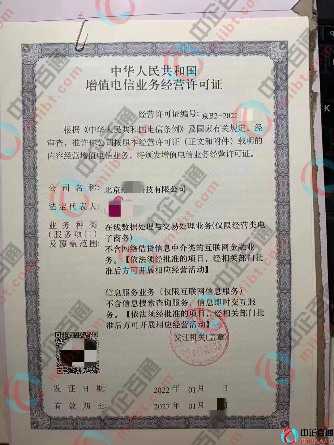 北京科技公司ICP許可證樣本(2022年1月)