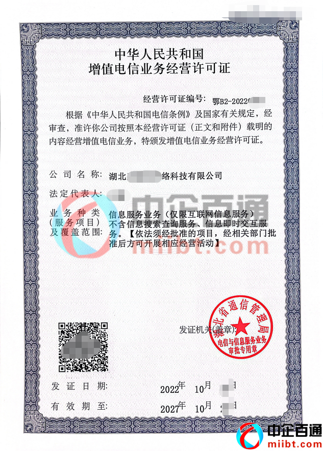 湖北網絡科技公司2022年10月份ICP許可證樣本