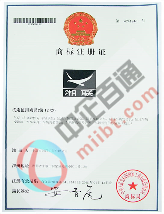某公司第12類商標注冊證書