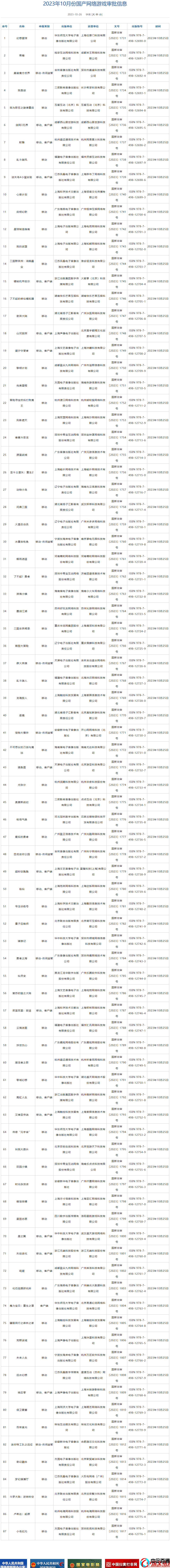 10月87款游戲過審,國風(fēng)武俠和二次元火熱(截止10月一共843個版號)